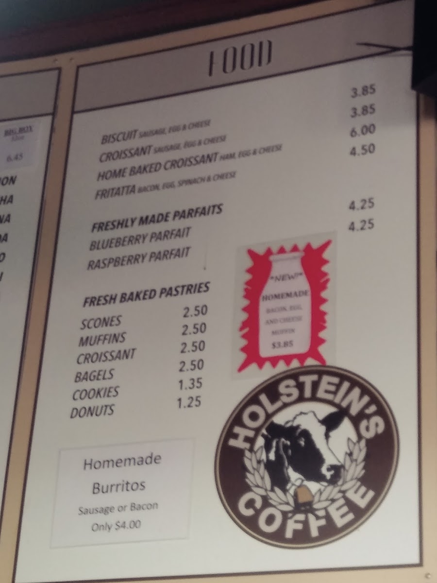 Holstein's Coffee Co is celebrated for its extensive menu, featuring freshly baked delights such as home-baked croissants, donuts, and mouthwatering pastries. Each item, whether it be the fluffy biscuits or enticing raspberry parfait, showcases a dedication to quality ingredients and homemade goodness. The standout must-try includes their delectable scones and muffins, perfect companions to the steaming cups of java brewing on the counter. One visitor raved about the white mocha and blueberry parfait, capturing the essence of indulgence and freshness all in one bite.